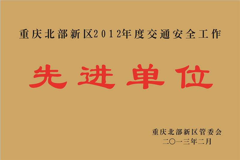 重庆北部新区2012年度交通安全工作先进单位